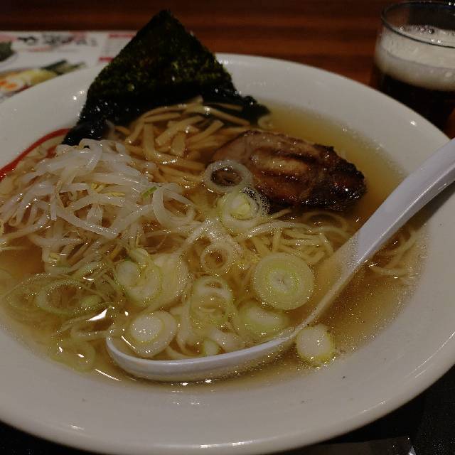 旅の締めくくりに手早くご当地ラーメンを食べられるのは実に有り難い。 柔らかい牛肉が印象的だった。 一緒にアサヒスーパードライ(小瓶)(600円)も注文。 全つゆ。