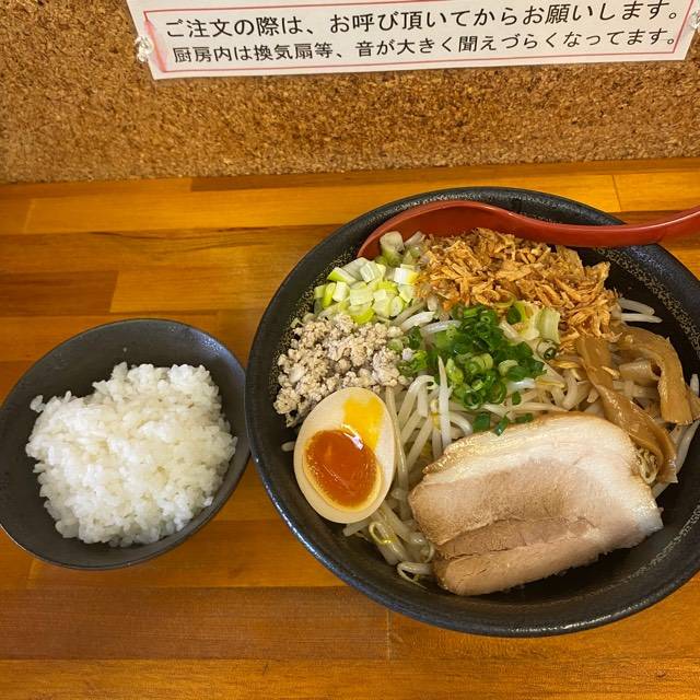 ピリ辛まぜそば 大盛 小ライス(1040円)