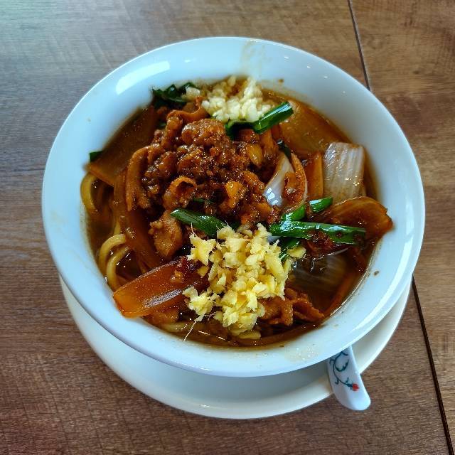 今日は凌駕IDEAさんで限定のブタガッツ頂きました。ガッツリ味付けされた豚バラ、玉ねぎ、ニラ、そこに刻んだニンニクとショウガがトッピングしていて、いかにもガッツリ系です。スープはブラック系の味わいで塩味強めですが、コクと甘味もある感じ。麺は極太、脂もあってスープをしっかり纏って、ワシワシいく感じです。半生玉葱やニンニク、ショウガで味変を楽しみながら、ガッツリ頂きました。夏にはこういうギトギトも食べたくなりますね。ご馳走さまでした。
