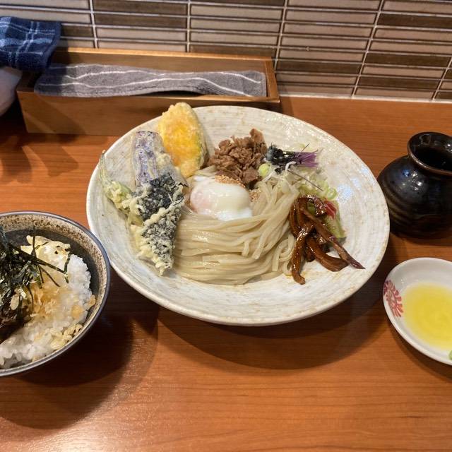 巴醤油の冷やしぶっかけ小麦麺+〆ご飯付き
