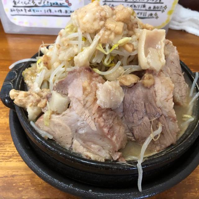野菜がぶ、脂がぶがぶ、ニンニク少なめ、ガブ肉4枚。 今日はチャーシューも塩っぱくなくうまくまとまった味でした。 久々インスパイア系食べましたがやっぱワタシは背脂が入ったラーメンが大好きです。笑 店内が暑かったですがコロナ禍で換気優先なんで仕方ないですよね。
