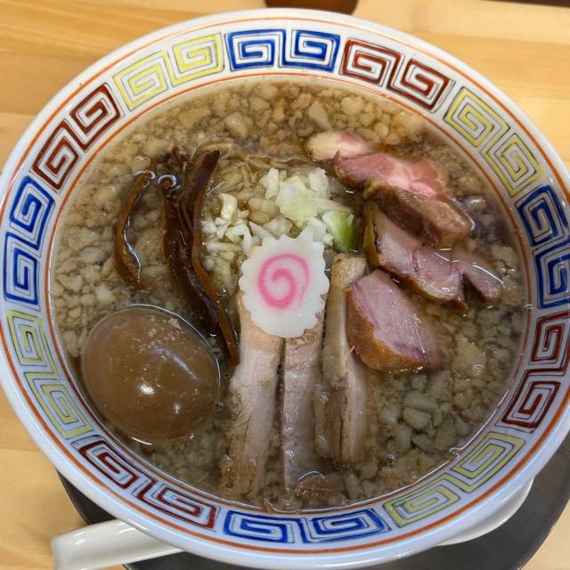 今日の夜ご飯として初訪問。 2025.10.1プレオープンの新店 典型的な背脂煮干中華そばだが、個人的には吊るし焼き豚の強烈な薫香だったり豚バラチャーシューの美味さにビビった。 もちろん麺とスープの相性も良くて、他のメニューも食べてみたいところ。