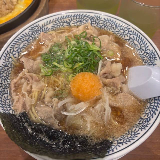 やわらかな豚肉をスープで炊き込むことでスープの旨みを染み込ませました。 麺に肉とスープの旨みが絡み、口の中に広がる至福の味! スープはトロッとまろやかな味。それが丸源名物「肉そば」。
