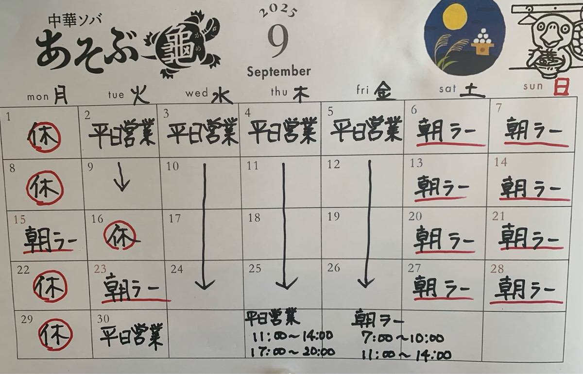 「あそぶ龜」9月のカレンダーです