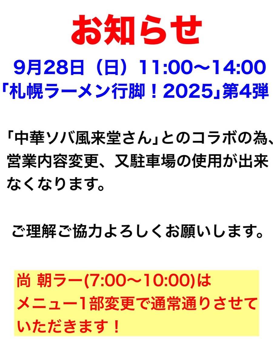 尚、10時迄はいつも通り「朝ラー」やってます
