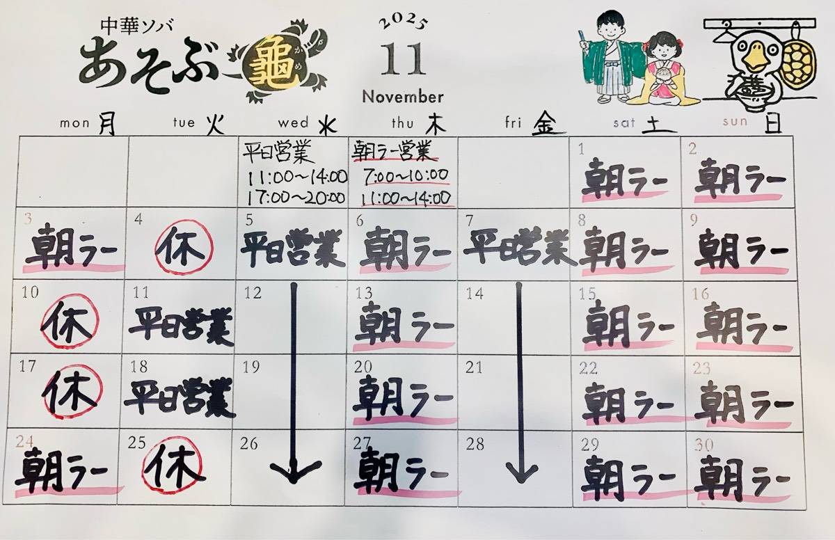 「あそぶ龜」11月のカレンダーです