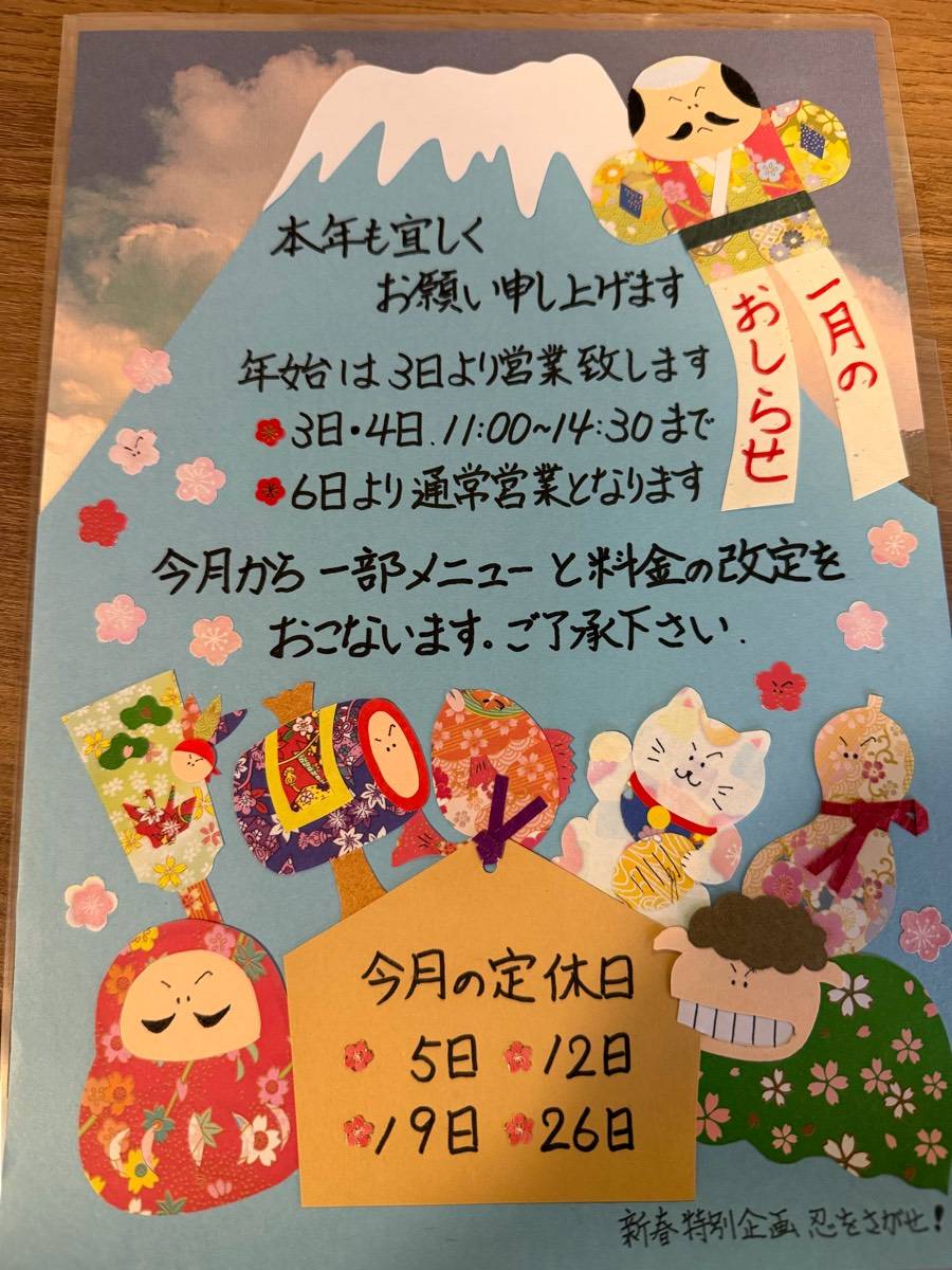 新年は3日からランチ営業スタートです。