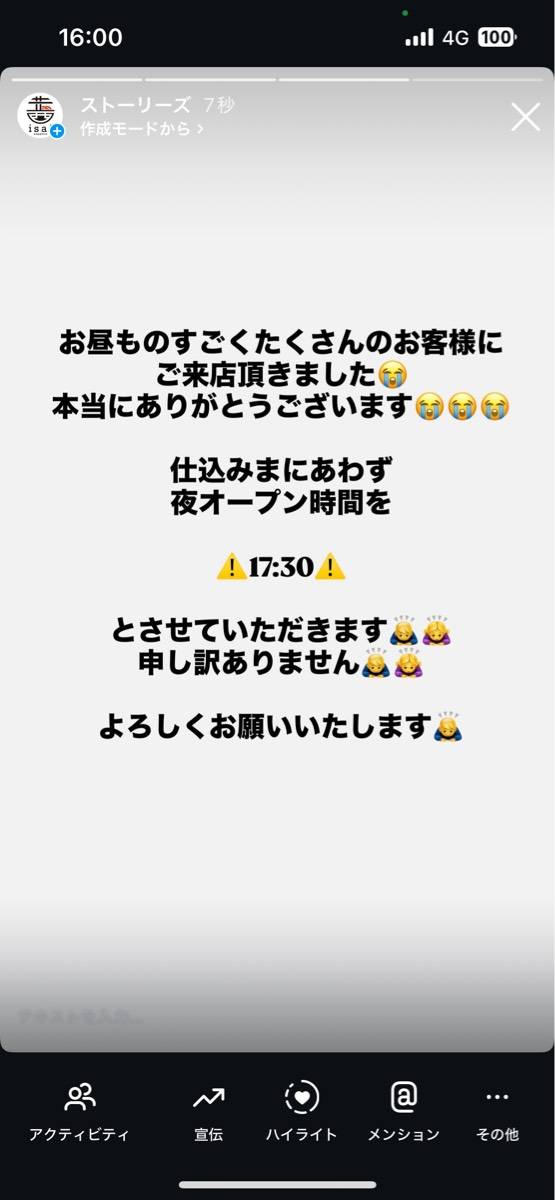 予定通り営業できず本当に申し訳ありません…