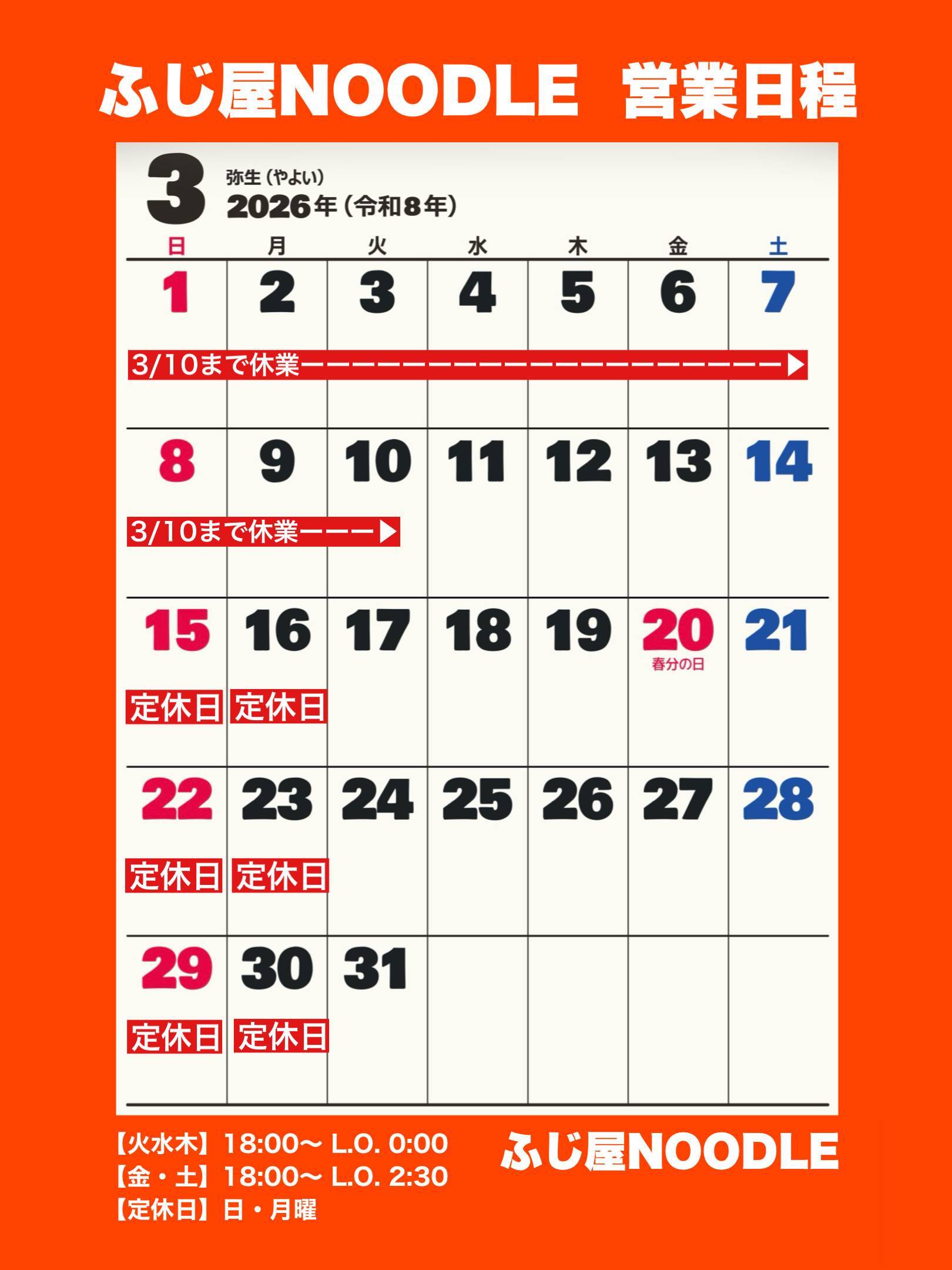3月の営業案内を告知してませんだ💦