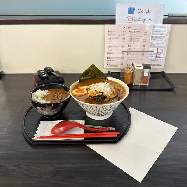 パチンコガイア様やドン・キホーテ様と同じビルにあります。濃コク味噌ラーメン、自家製味噌豚丼、カレーラーメンがオススメです。その他に定食等も取り揃えております。 お子様用の食器、椅子などを用意していまず。