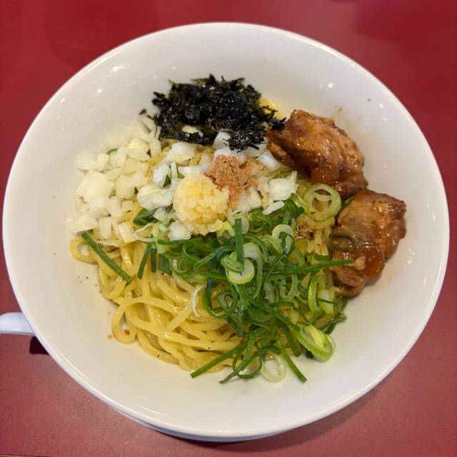 やわらかな豚肉をスープで炊き込むことでスープの旨みを染み込ませました。 麺に肉とスープの旨みが絡み、口の中に広がる至福の味! スープはトロッとまろやかな味。それが丸源名物「肉そば」。