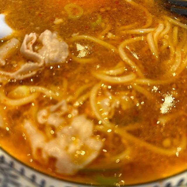 やわらかな豚肉をスープで炊き込むことでスープの旨みを染み込ませました。 麺に肉とスープの旨みが絡み、口の中に広がる至福の味! スープはトロッとまろやかな味。それが丸源名物「肉そば」。