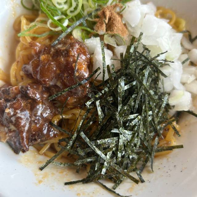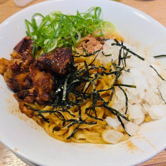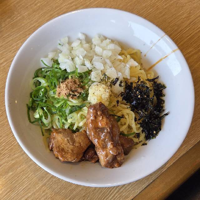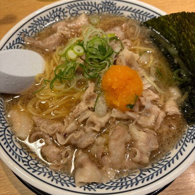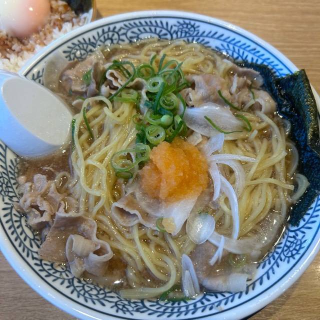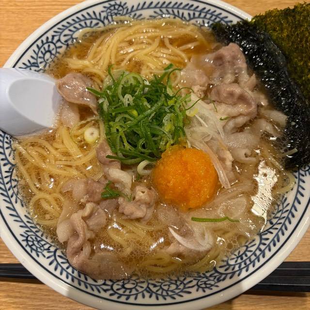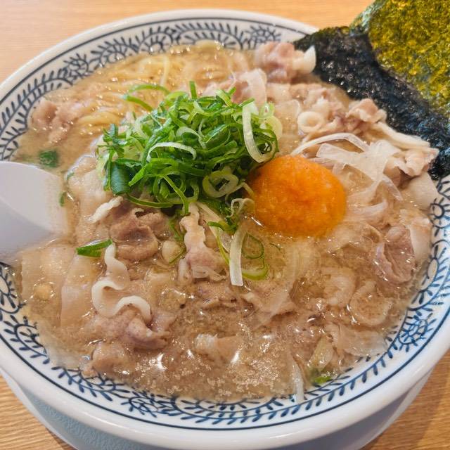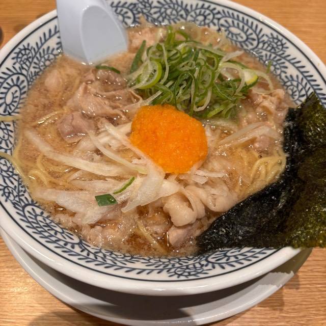 やわらかな豚肉をスープで炊き込むことでスープの旨みを染み込ませました。 麺に肉とスープの旨みが絡み、口の中に広がる至福の味! スープはトロッとまろやかな味。それが丸源名物「肉そば」。