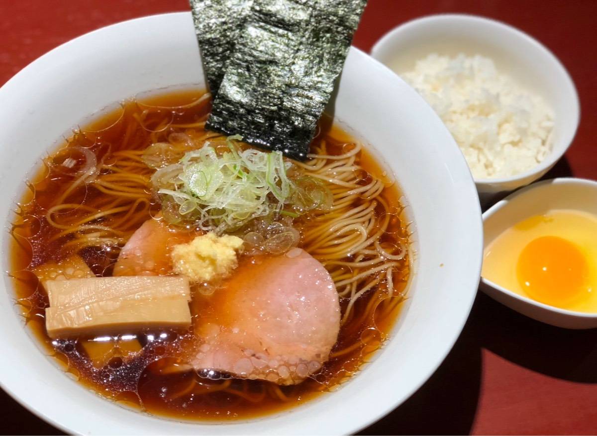 小ライス、生卵付きで