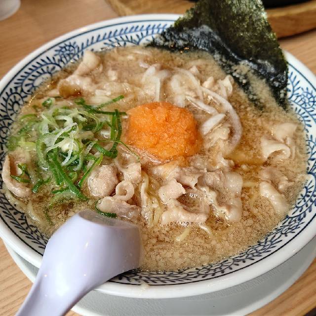 やわらかな豚肉をスープで炊き込むことでスープの旨みを染み込ませました。 麺に肉とスープの旨みが絡み、口の中に広がる至福の味! スープはトロッとまろやかな味。それが丸源名物「肉そば」。