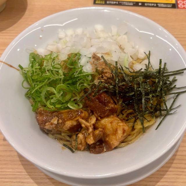 やわらかな豚肉をスープで炊き込むことでスープの旨みを染み込ませました。 麺に肉とスープの旨みが絡み、口の中に広がる至福の味! スープはトロッとまろやかな味。それが丸源名物「肉そば」。