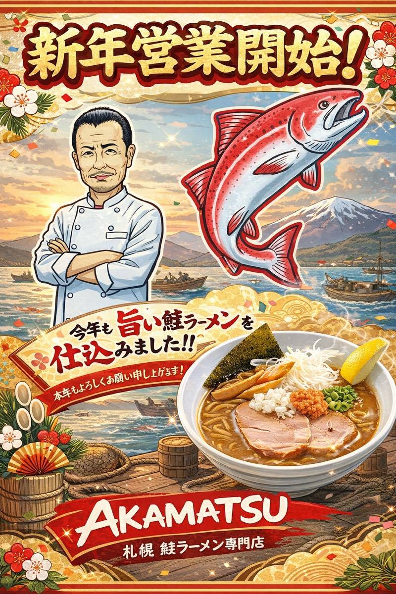 札幌鮭ラーメン 麺匠赤松は開業15周年を迎えます。