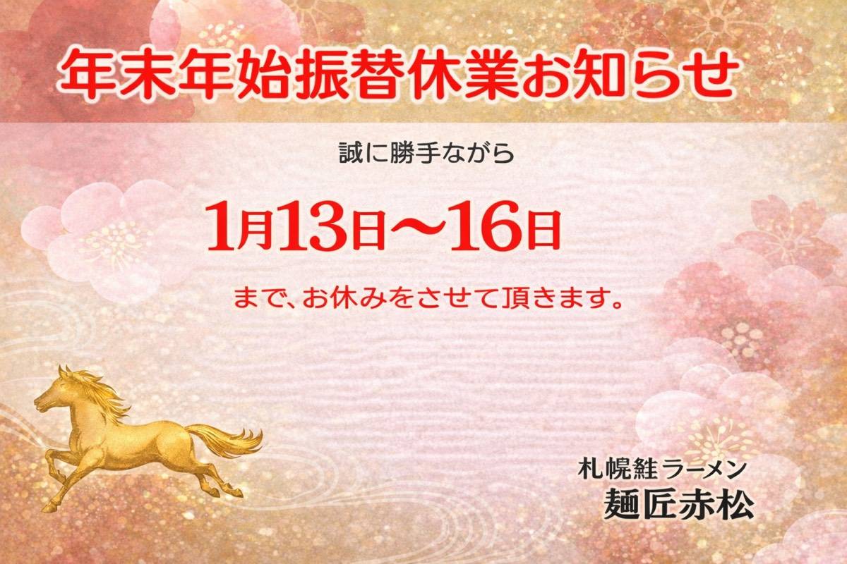 【年末年始振替休業お知らせ】