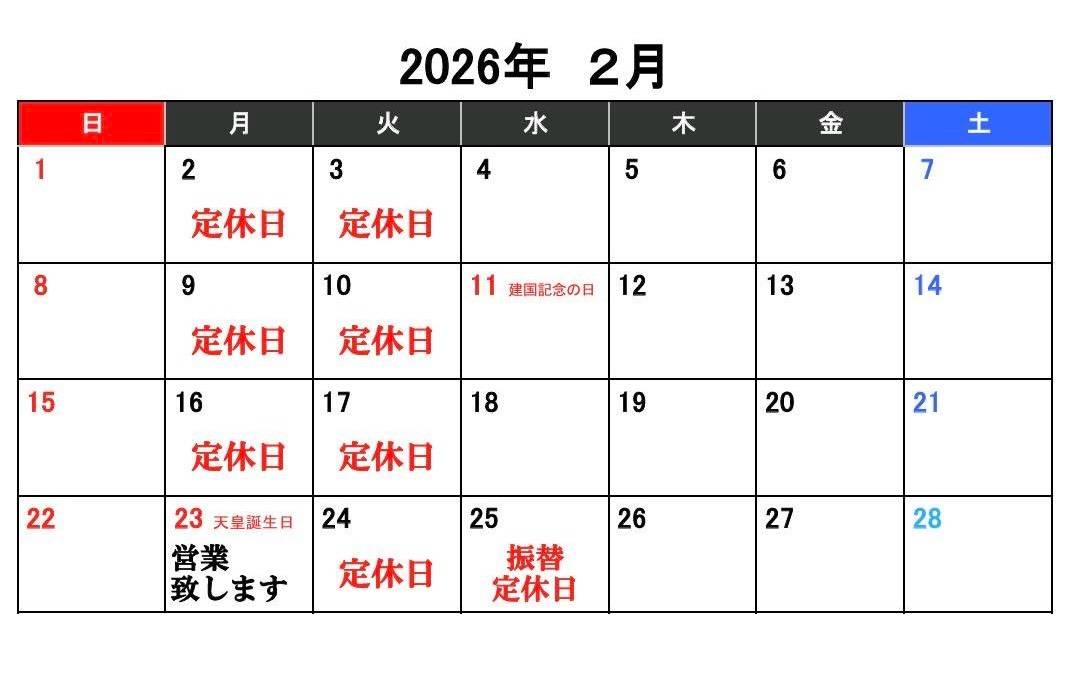 【2月 営業のお知らせ】