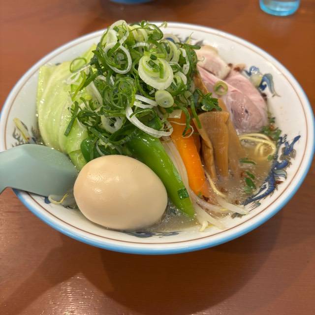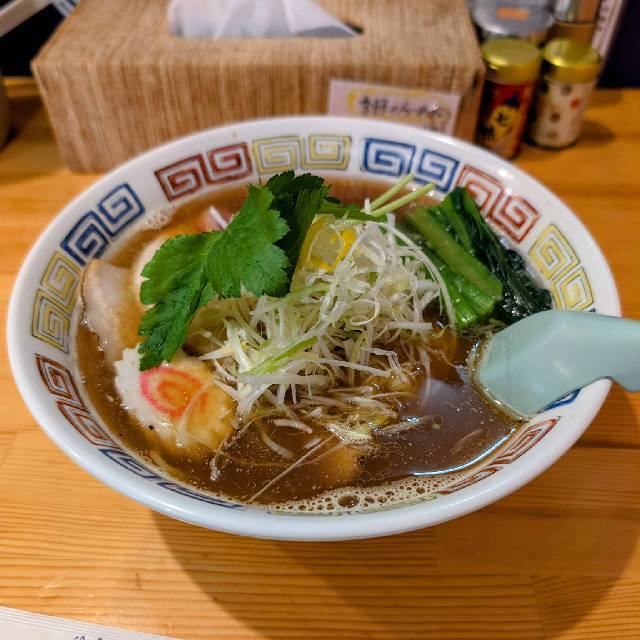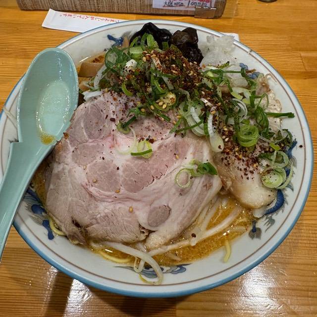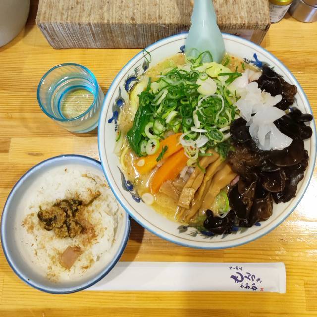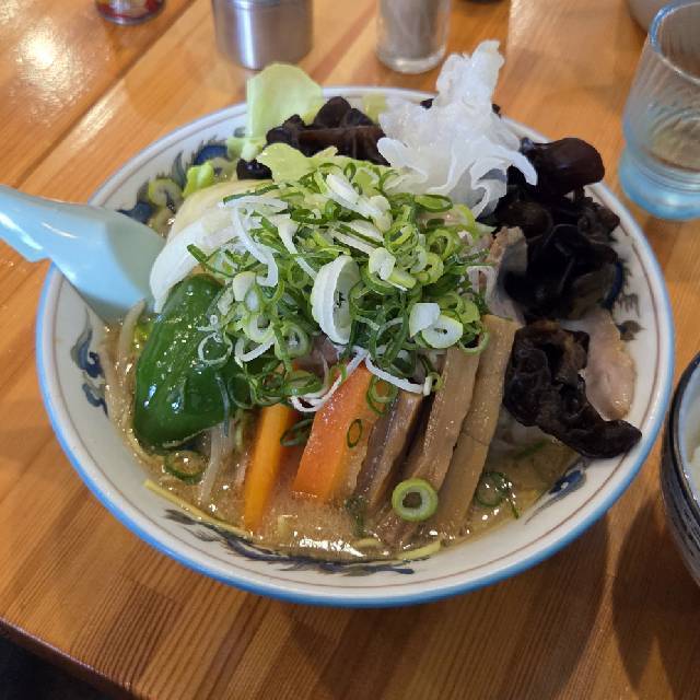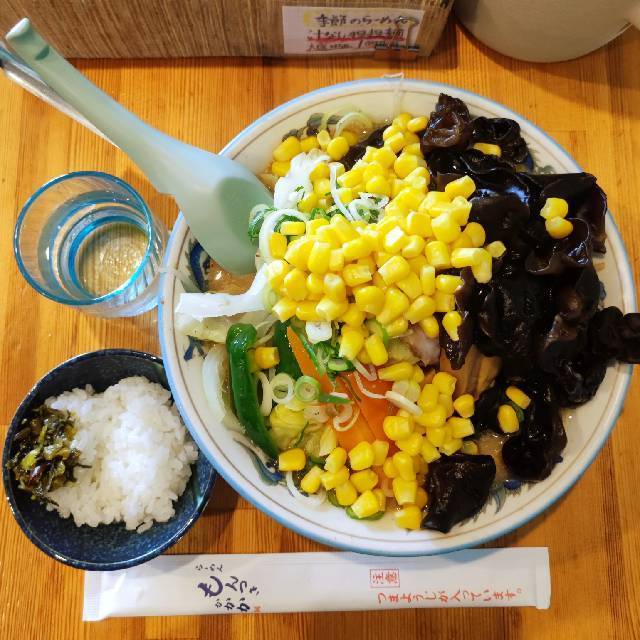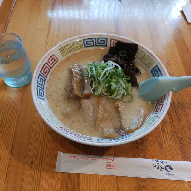 6台(店舗横に2台、3台空けて砂利駐車場に1台、道路向かいの神社の駐車場13番・14番・15番の3台)