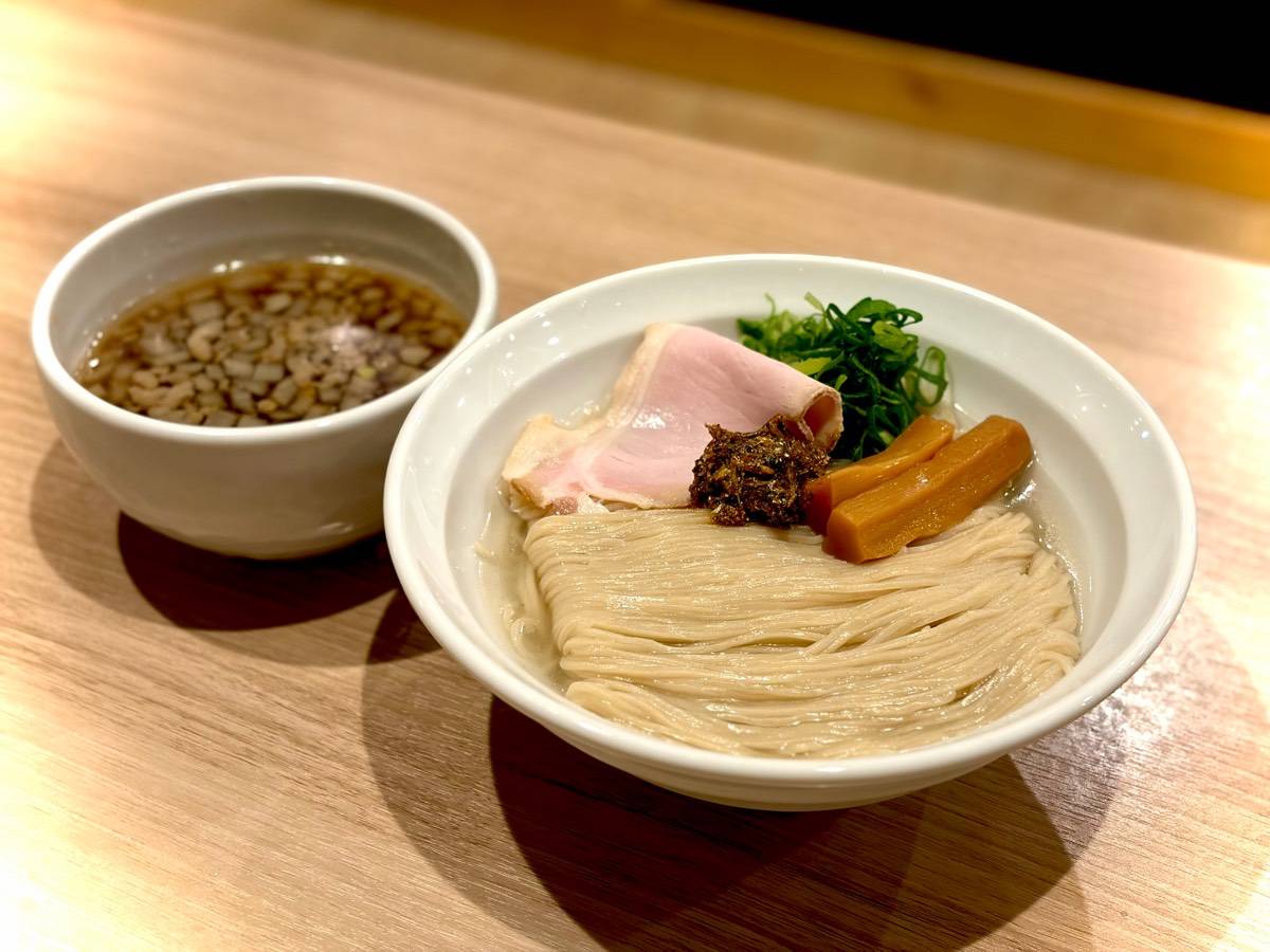 鯛出汁、豚骨白湯、豚清湯のトリプルスープに背脂から抽出した油に塩ダレ。