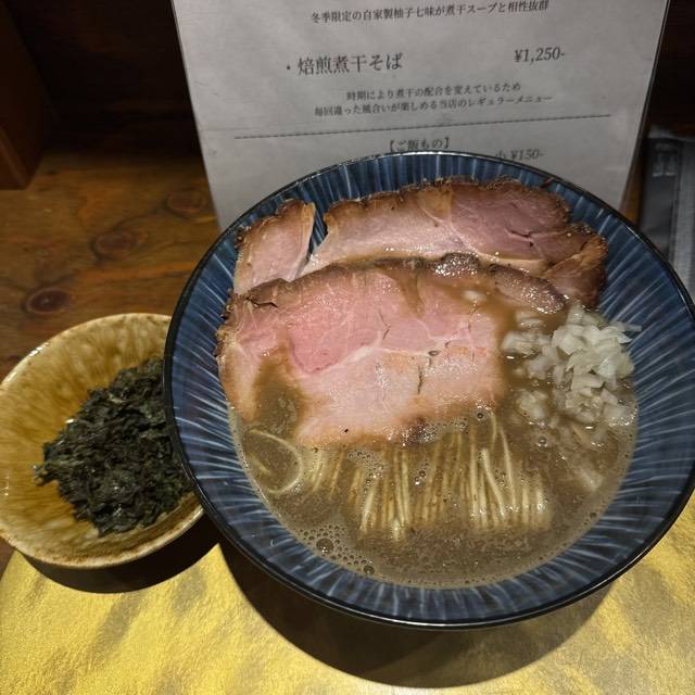 焙煎煮干そば、つけ麺を提供。
