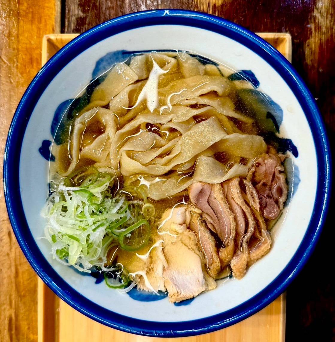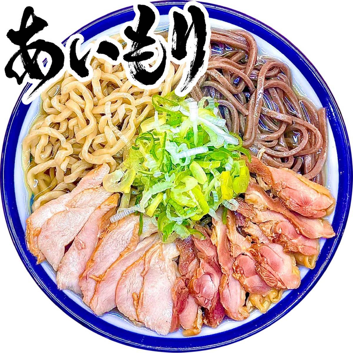 肉そば & 鳥中華を一度で両喰い! 一つの器で2種類を同時に味わえる。 わくわくする一杯♪ 今では『てノ字』人気の一杯‼︎ ※ 麺やわめ ※ スープ味濃いめ 受付まで申付下さい。 ※ 麺大盛無料 (200g)(300g)(400g)同料金!