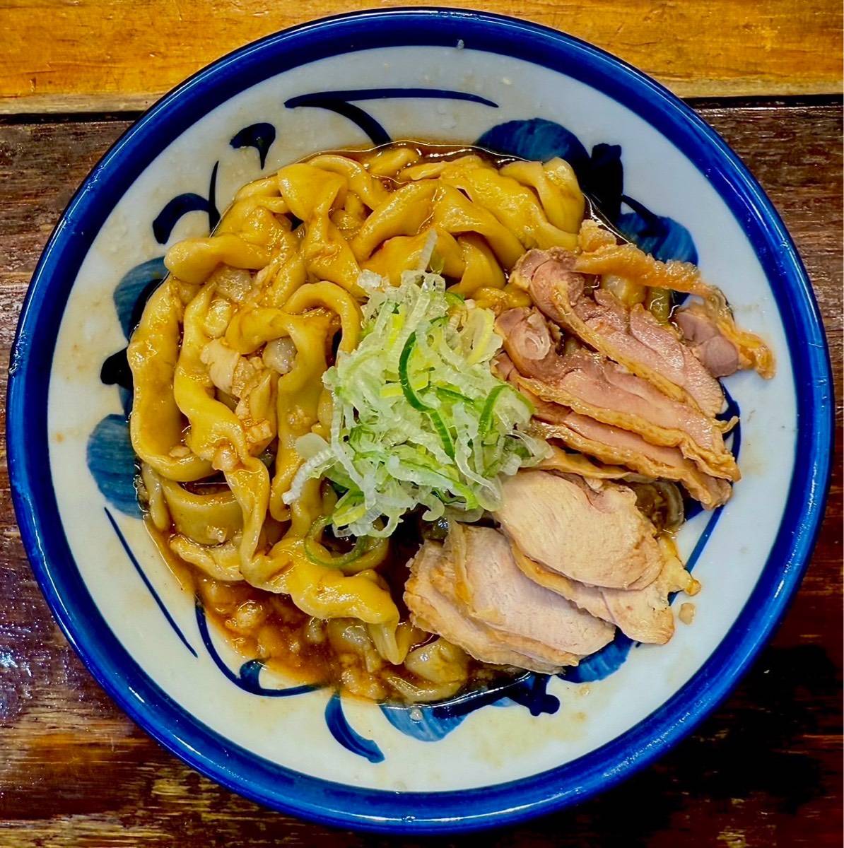 河北町谷地の名物料理です。 大正時代は酒が飲める場所はそば店のみであり、馬肉の煮込みで酒を飲んで、締めにそばを食べていました、ある客が残った馬肉をそばに入れて食べたところ、思いのほか美味であったために、この食べ方が広まったそうな。戦後、調達のしやすさから、鶏肉を用いるようになりました。 ※ 麺やわめ ※ スープ味濃いめ 受付まで申付下さい。 ※ 麺大盛無料 (200g)(300g)(400g)同料金!