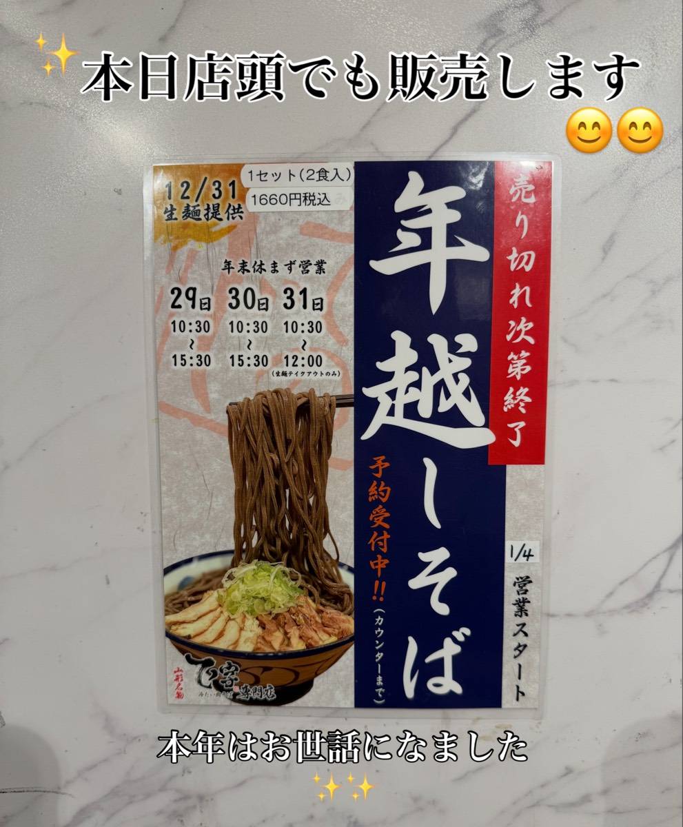 本日店頭でも年越しそば販売します!