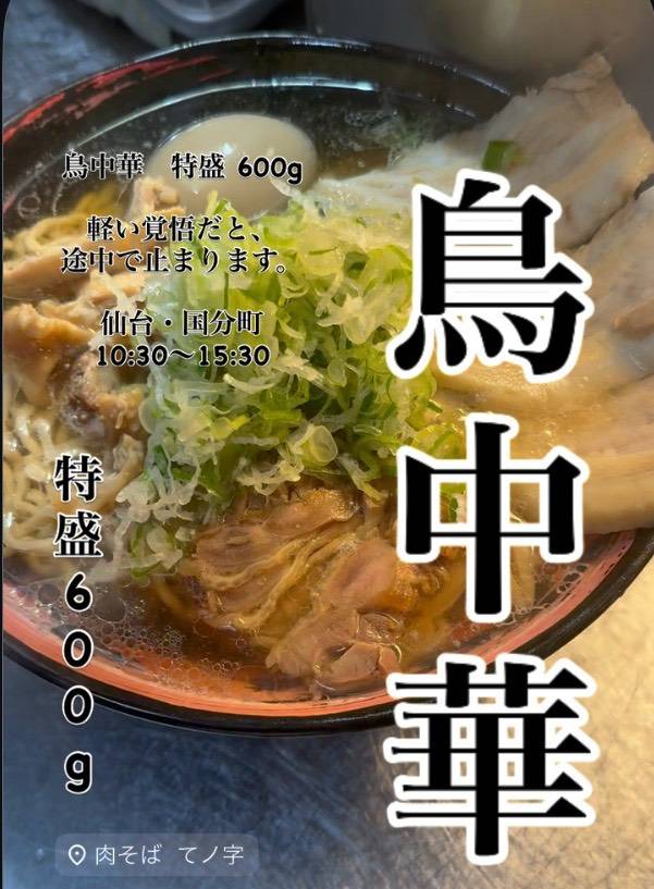 肉そば(肉肉増し)・鳥中華・あいもり を提供する専門店。