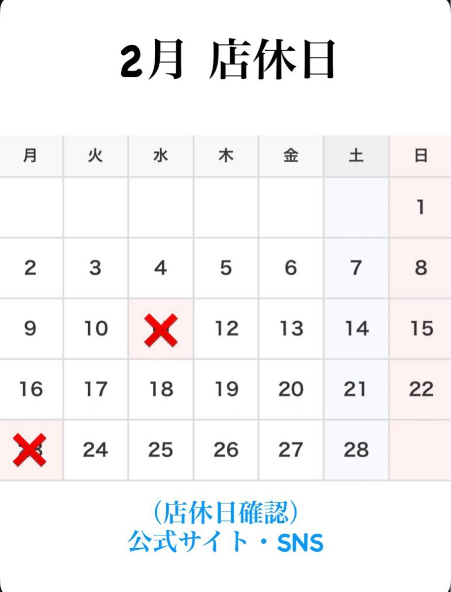 2月 店休日