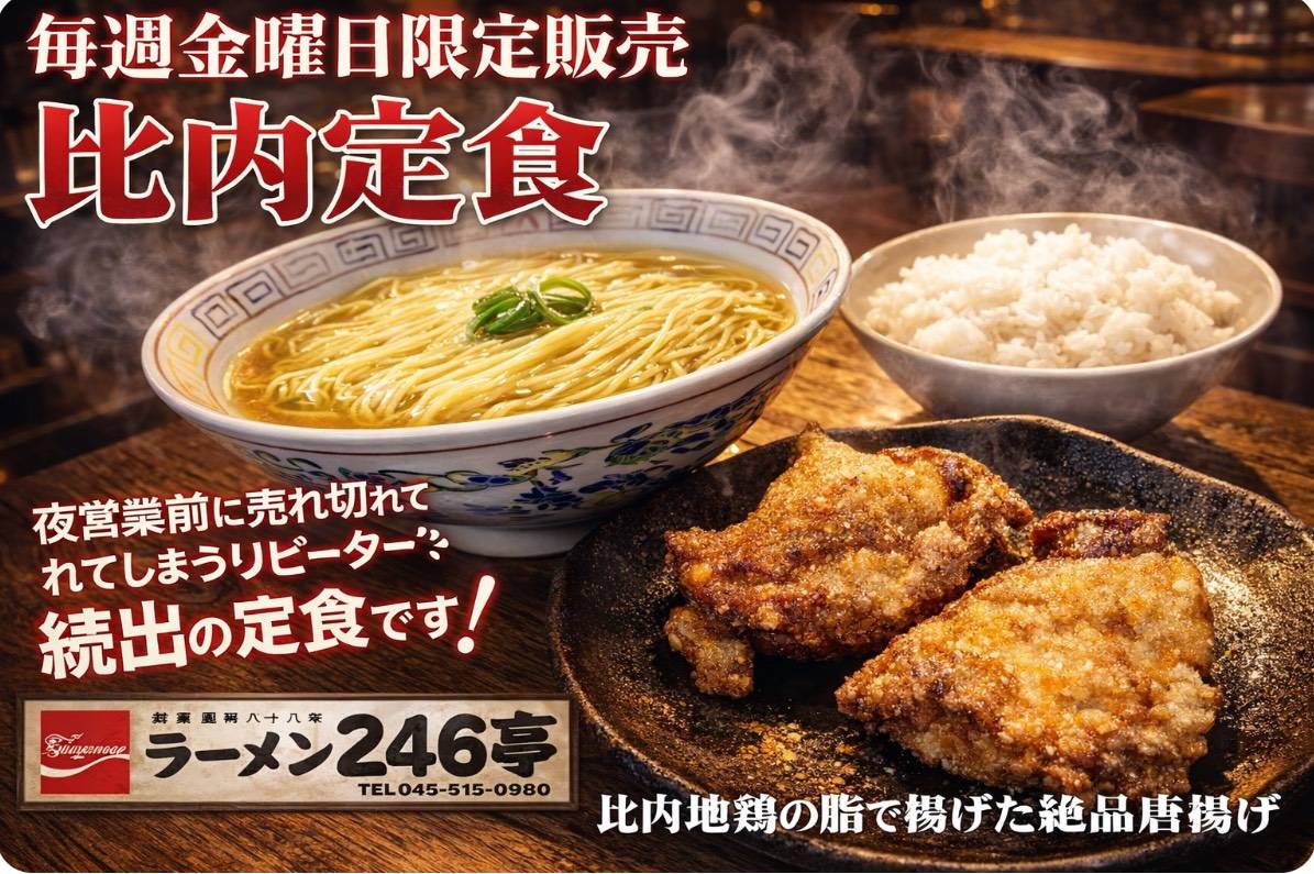 #ラーメン #唐揚げ #比内地鶏 #限定メニュー #神奈川グルメ #246亭